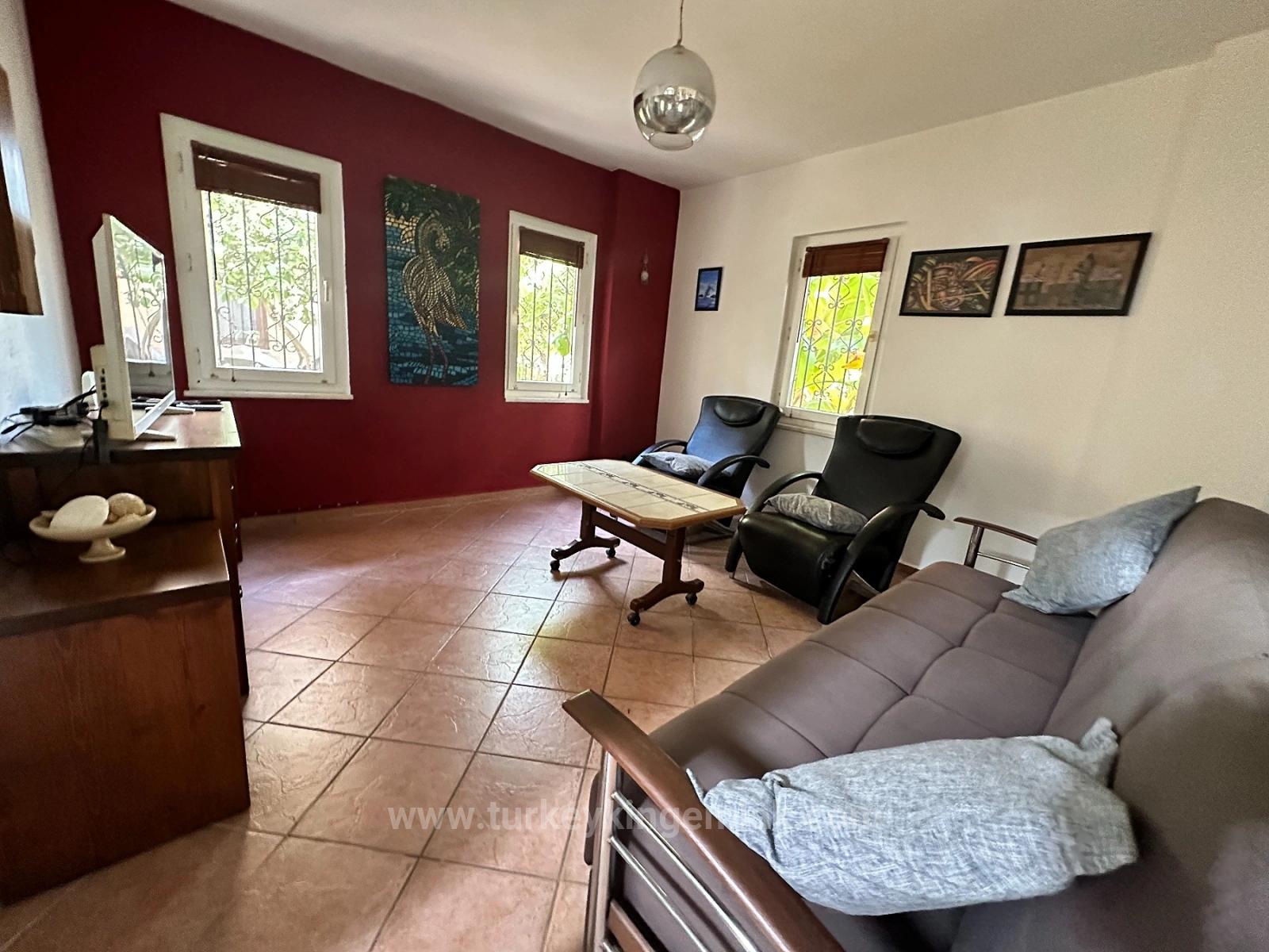 data-end="875">In dieser gepflegten Anlage mit insgesamt sieben Villen steht eine Villa zum Verkauf. Die Anlage ist als Wohnanlage organisiert. Vor dem Gebäude befindet sich ein 40 m² großer Gemeinschaftspool. Der Poolbereich ist von Gärten mit tropischen Pflanzen umgeben, die jeder Villa eine großzügige, grüne und einladende Atmosphäre verleihen. Die kompakte und dennoch durchdachte Grundstücksstruktur bietet ein ausgewogenes Verhältnis zwischen Gemeinschaftsgefühl und Privatsphäre. Beim Betreten der Villa empfängt Sie eine helle und einladende Eingangshalle. Von hier aus gelangen Sie fließend in den offenen Wohnbereich mit angrenzender, kürzlich renovierter Küche. Die sonnige Terrasse lädt zum Verweilen, Essen im Freien, Entspannen oder gemütlichen Gesprächen ein und verbindet so den Außenbereich mit dem Wohnen. Der Wohnbereich ist in zwei separate Bereiche unterteilt: einen Ess- und Arbeitsbereich auf der einen Seite und ein geräumiges, komfortables Wohnzimmer auf der anderen. Ein Gäste-WC befindet sich ebenfalls im Erdgeschoss. Über die Treppe erreichen Sie die privaten Wohnbereiche im Obergeschoss. Das geräumige Hauptschlafzimmer an der Vorderseite des Hauses verfügt über einen schönen Balkon mit Blick auf das Grundstück und ist lichtdurchflutet. Zusätzlich gibt es zwei weitere große Doppelzimmer mit jeweils eigenem Balkon, die eine großzügige und ruhige Atmosphäre bieten. Das Familienbadezimmer besticht durch ein stilvolles und funktionales Design, das Funktionalität mit moderner Ästhetik verbindet und mit Steindetails renoviert wurde. Die Melody Villa wird komplett möbliert zum Verkauf angeboten und ist bezugsfertig. Die neuen Eigentümer benötigen lediglich die Schlüssel. Dank ihrer zentralen Lage, der ruhigen Grundstücksgestaltung und der harmonischen Raumaufteilung ist diese Villa eine äußerst attraktive Option für alle, die ein dauerhaftes Zuhause, ein komfortables Ferienhaus oder eine solide Investition in Dalyan suchen. Diese exklusive Immobilie ist exklusiv über King Real Estate erhältlich. p data-start=2517 data-end=2547 data-is-last-node= data-is-only-node="">Immobilien-Autorisierungsnummer: 4800246