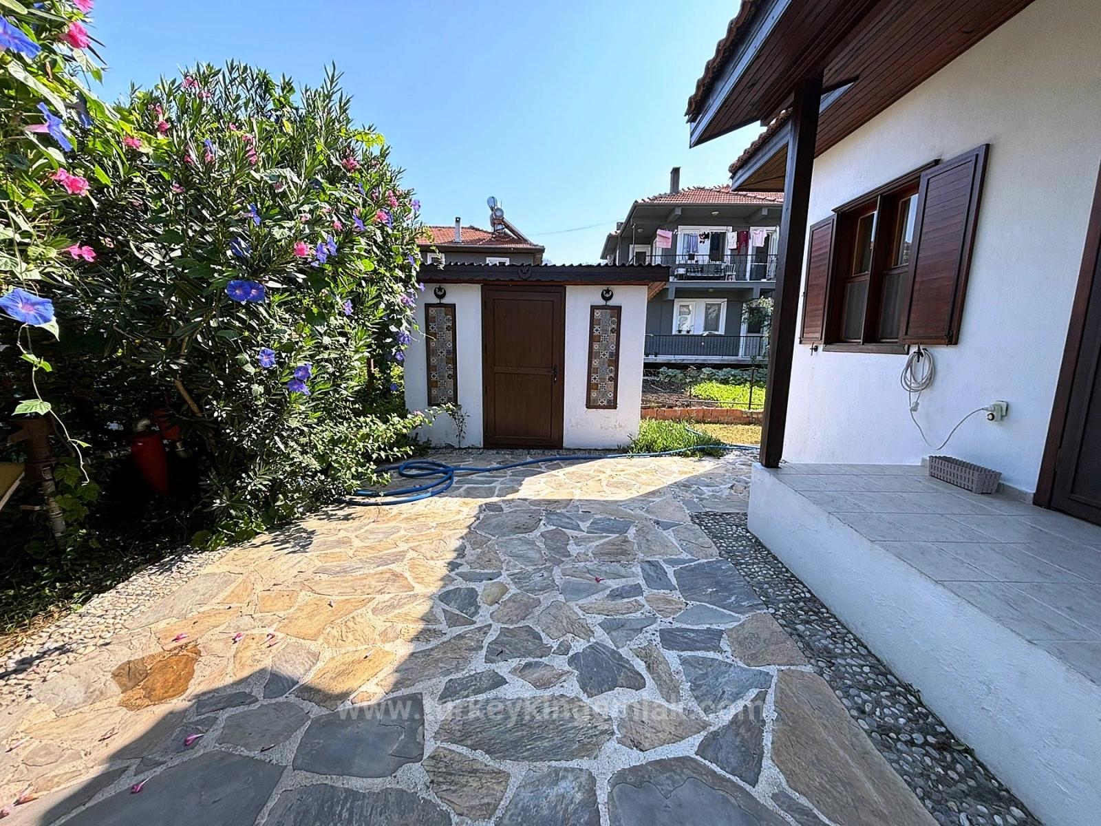 Eingebettet in die unberührte Natur von Arıkbaşı, umgeben von Vogelgezwitscher und malerischen Ausblicken auf die Landschaft und dennoch nur wenige Gehminuten vom Zentrum Dalyans entfernt, präsentiert sich die Villa Vardiye View als eine äußerst elegante und charaktervolle Privatvilla an einer ruhigen Dorfstraße. Mit ihren herzlichen Nachbarn, der friedlichen Atmosphäre und der freundlichen Art berührt diese Villa auf Anhieb das Herz. Sie ist ein einzigartiger Wohnraum, der von ihren jetzigen und einzigen Eigentümern mit viel Liebe zum Detail gestaltet und erbaut wurde. Dieses außergewöhnliche Anwesen, das sich in jedem Detail von anderen unterscheidet, besticht nicht durch Prahlerei, sondern durch seinen Charakter. Der eingewachsene Garten mit seinen farbenfrohen Blumen, Sträuchern und sattgrünen Rasenflächen gleicht einem kleinen botanischen Garten. Mitten im Garten gelegen, lädt der 40 m² große Swimmingpool mit römischer Treppe und seiner großzügigen Sonnenterrasse zum Verweilen ein und wird an Sommertagen sicherlich ein beliebter Treffpunkt sein. Der traditionelle Holzpavillon, der zum Verweilen im Schatten und Genießen des Ausblicks auf Felder und Berge einlädt, verleiht dem Garten eine nostalgische Eleganz. Ein praktischer, offener Parkplatz, ein separater Waschraum im Freien und ein Abstellraum für Gartengeräte runden das Angebot ab. Das einzigartige Anwesen besticht durch seine besonderen Details und hebt sich nicht durch Prahlerei, sondern durch seinen Charakter ab. Obwohl die Villa auch durch das Haupttor zugänglich ist, spiegelt der Kücheneingang, der über eine geräumige Terrasse am Pool erreichbar ist und oft als „Herreneingang“ bezeichnet wird, ihren Charakter am besten wider. Gemütliche Sitzgruppen am Pool führen von diesem Eingang in eine warme und einladende Atmosphäre. Die geräumige Küche aus Massivholz mit viel Arbeitsfläche und Schränken öffnet sich zu einem Essbereich mit einem massiven, originalen Holztisch und Stühlen. Das Erdgeschoss mit seinen dicken Steinmauern und mittelgroßen Fenstern bietet in den Sommermonaten angenehme Kühle und schafft so eine friedliche und ruhige Wohnatmosphäre. Alle drei Schlafzimmer im Erdgeschoss sind Doppelzimmer und verströmen mit ihren Holzmöbeln und dem eleganten Landhausstil ein warmes Ambiente. Neben einem gemeinsamen Familienbad mit Dusche verfügt das Hauptschlafzimmer über ein eigenes Bad. Über die geschwungene Treppe gelangen Sie in die obere Etage, wo Sie eine ganz andere Welt erwartet. Das geräumige, offene Wohnzimmer mit echtem Kamin, großen Glastüren, fließenden, transparenten Vorhängen und einer gemütlichen Eckcouch ist ein traumhafter Rückzugsort für Romantiker, die sich besonders an Winterabenden ein Buch am Kamin wünschen. Vom Wohnzimmer aus gelangen Sie auf die Terrasse im ersten Stock, die einen herrlichen Blick auf Fluss und Berge bietet. Mit eigenem Grill und großzügigen Sitzgelegenheiten lädt diese Terrasse zu einem zweiten Wohnraum für Mahlzeiten und lange Gespräche bei Sonnenuntergang ein. Im Obergeschoss befinden sich außerdem eine voll ausgestattete Küchenzeile und ein geräumiges Badezimmer mit Whirlpool. Diese Details genügen vollkommen, um Sie aufs Neue in die Villa Vardiye View verlieben zu lassen.