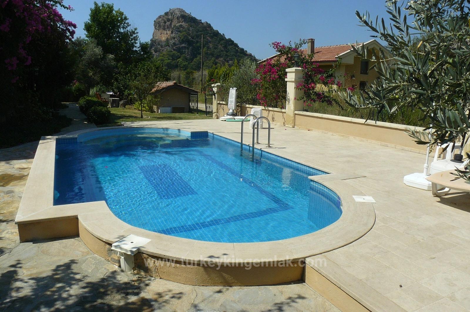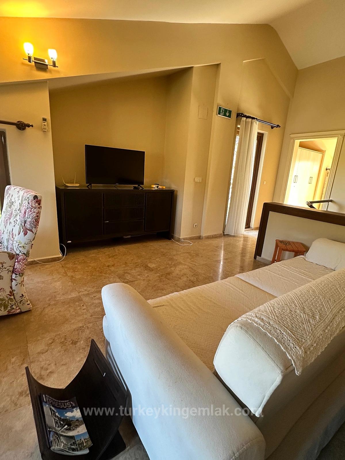 Das Erdgeschoss der Villa ist sehr durchdacht gestaltet. Diese Etage verfügt über zwei Schlafzimmer mit jeweils einem geräumigen Doppelbett. Dank der Oberlichter erhalten die Räume viel Tageslicht und bleiben selbst an den heißesten Sommertagen angenehm kühl; eine Klimaanlage ist daher nicht nötig. Die natürliche Kühle und der Komfort dieser Etage bieten einen deutlichen Vorteil hinsichtlich Energieeffizienz und Wohnqualität. Auf dieser Etage befindet sich außerdem ein modernes Familienbad, das Gästen oder Familienmitgliedern einen idealen Aufenthaltsbereich bietet. Im nächsten Stockwerk erwartet Sie eine stilvolle und großzügige offene Küche mit Essbereich. Dieser Bereich öffnet sich direkt zu einer Holzterrasse mit Blick auf den Vorgarten und verbindet so fließend Innen- und Außenbereich. Hier finden Sie den perfekten Rahmen für den Morgenkaffee oder ein gemütliches Abendessen. Eine zweite Tür an der Seite führt auf eine weitere Terrasse und in den Garten und bietet so zusätzliche Nutzungsmöglichkeiten. Auf dieser Etage befinden sich außerdem ein Badezimmer mit Dusche und ein ruhiger Bereich mit direktem Zugang zum Garten. Ein Doppelzimmer steht zur Verfügung. Das Dachgeschoss ist der Hauptwohnbereich, der den Charakter der Villa widerspiegelt. Das lichtdurchflutete Wohnzimmer mit seinen hohen, fließenden Decken und dem echten Kamin strahlt Wärme und Charakter aus. Der großzügige Holzbalkon, der vom Wohnzimmer aus zugänglich ist, bietet ausreichend Platz zum Sitzen oder Essen und eröffnet einen Blick auf den Fluss am Ende des Gartens. Von hier aus bietet sich ein einzigartiges Panorama bis hin zu den Felsengräbern. Dieser Ausblick, der sich im Laufe des Tages verändert, ist eines der beeindruckendsten Merkmale des Hauses. Das Hauptschlafzimmer befindet sich ebenfalls auf dieser Etage und verfügt über ein eigenes Badezimmer mit Badewanne und einen französischen Balkon mit Blick auf die ruhige Straße. Diese Details unterstreichen die Großzügigkeit und Helligkeit des Zimmers. Die Atmosphäre im gesamten Haus ist hell, luftig und harmonisch; Gemeinschafts- und Privatbereiche gehen fließend ineinander über. Die King’s Villa Nr. 1 ist mehr als nur ein Wohnsitz; sie ist ein sorgfältig gestaltetes Wohnerlebnis. Ob als elegantes Familienhaus, exklusives Ferienhaus oder lohnende Investition – diese Villa bietet mit ihrer Lage und der gebotenen Qualität eine seltene Gelegenheit. Eine einmalige Gelegenheit, diese exklusive Villa zu erwerben, die Komfort, architektonische Eleganz und eine der beeindruckendsten Aussichten der Region vereint.