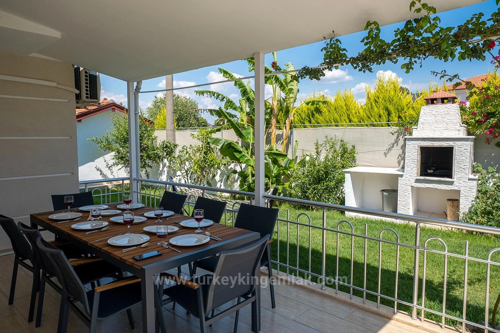 Schon von außen besticht die Villa durch eine geheimnisvolle Eleganz. Hohe, natürliche Zäune trennen sie gekonnt von der Außenwelt und bieten Ihnen einen absolut privaten Wohnraum. Der großzügige Swimmingpool reflektiert das Sonnenlicht wie Kristalle, während das angrenzende Kinderbecken einen sicheren Spielbereich für die kleinen Gäste bietet. Der Duft sonnenwarmer Steine, der gepflegte Rasen und die farbenfrohe Harmonie der Natur verwandeln den Garten in eine wahre mediterrane Oase. Der Steingrill und die riesige überdachte Terrasse laden zu lauen Sommerabenden voller Gespräche und Lachen ein. Der private, überdachte Parkplatz erleichtert den Alltag. Schon beim Betreten der Villa empfängt Sie eine ruhige Atmosphäre, geschaffen durch großzügige, friedliche und geschmackvoll gewählte Farben. Das geräumige und komfortable Wohnzimmer bietet Platz für unvergessliche Momente mit der ganzen Familie. Die lange, L-förmige, moderne Küche mit ihren breiten Arbeitsflächen und der praktischen Aufteilung macht die Zubereitung großer Mahlzeiten zu einem genussvollen Ritual. Die Farben des Bodens, das Spiel des Lichts an den Wänden und die Harmonie der modernen Einrichtung schaffen ein warmes und einladendes Zuhause. Das geräumige Doppelzimmer und das moderne Gästebad im Erdgeschoss bieten Komfort und Stil. Über die Holztreppe gelangen Sie in drei elegante Schlafzimmer, jedes mit seinem eigenen Charme. Das Hauptschlafzimmer bietet mit seinem privaten Ankleidebereich, dem geräumigen Badezimmer en suite und dem Balkon eine Oase der Ruhe. Die beiden anderen Schlafzimmer sind ebenfalls großzügig geschnitten, hell und verfügen über jeweils ein eigenes Duschbad – so genießen Sie im Obergeschoss höchsten Wohnkomfort. Die Villa İnci wird komplett möbliert angeboten, inklusive aller Haushaltsgeräte und Klimaanlage. Dieses besondere Zuhause, perfekt für laue Sommerabende und ruhige Wintertage, verspricht seinem neuen Besitzer eine Zukunft voller Frieden und Glück – ob als dauerhaftes Zuhause oder als wertvolle Kapitalanlage. Preis: 25.000.000 TL