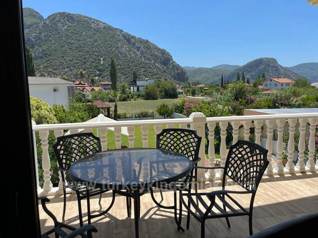 Located on an extra-large 800 m² plot surrounded by impressive mountain silhouettes in the tranquil and natural environment of the Arıkbaşı region of Dalyan, this exclusive four-bedroom villa offers a truly rare living opportunity. With its lush garden, spacious outdoor areas and uninterrupted views, Villa Cappuccino is a private family home designed for those seeking both tranquility and comfort. Accessible to the center of Dalyan with a pleasant twenty-minute walk or just a five-minute bike ride, this location is ideal for those who want to live in harmony with nature while remaining close to the center. Never rented out, the villa has been meticulously preserved and used exclusively for family life.