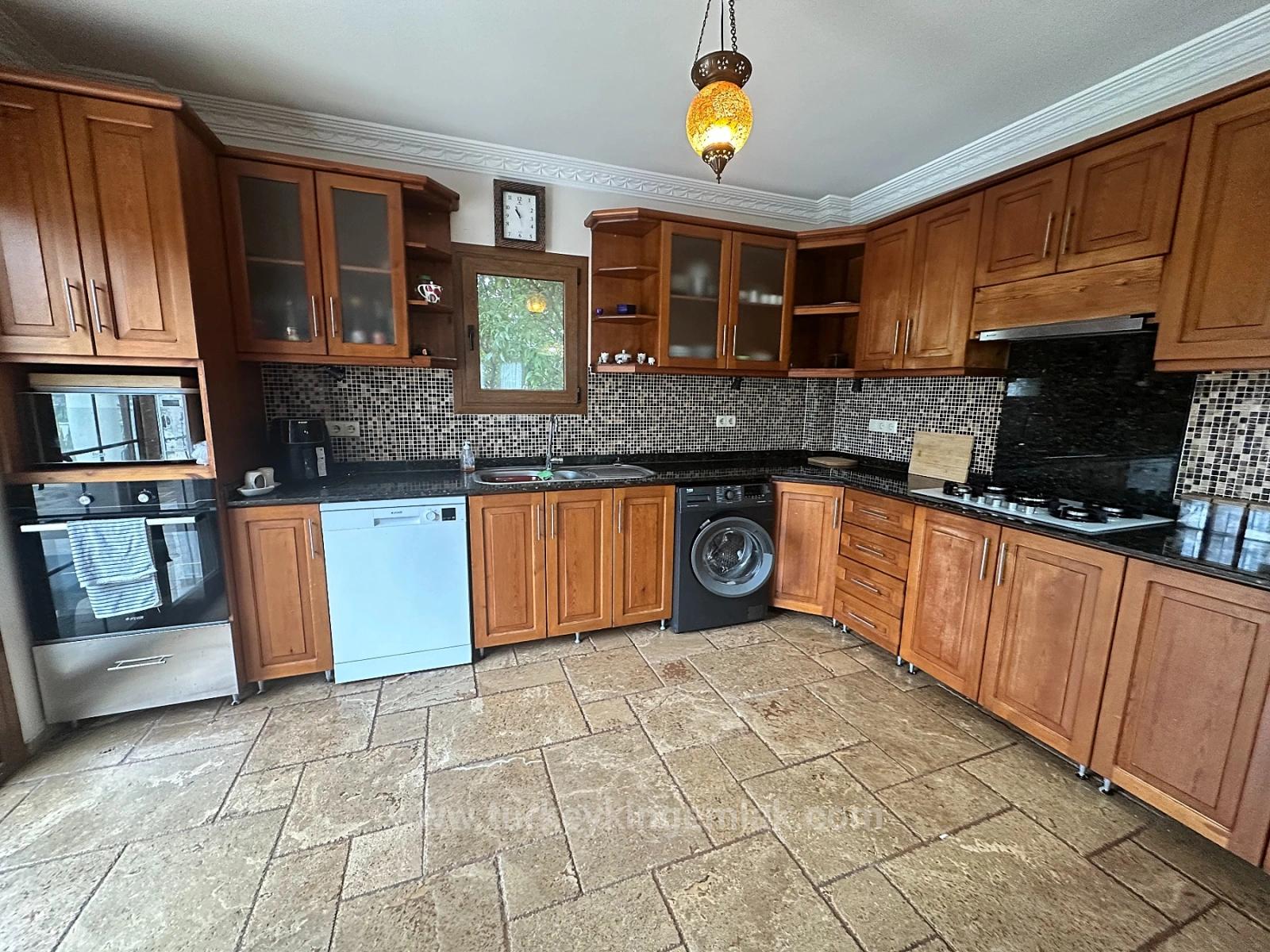 Вилла Gold, расположенная всего в нескольких шагах от оживленного центра Дальяна, но при этом на удивительно тихой, зеленой улочке, выделяется редким сочетанием доступности и спокойствия. С первого взгляда вилла отражает классическое очарование средиземноморской архитектуры: облицованный натуральным камнем фасад и зрелый ландшафт создают приватное жилое пространство, дарящее ощущение уединения и безмятежности — убежище от городской суеты, несмотря на близость к кафе, магазинам и набережной реки. Расположенная в тщательно благоустроенном саду площадью 500 м², вилла окружена пышной растительностью и солнечными открытыми пространствами. В центре находится привлекательный бассейн площадью 40 м², дополненный традиционным каменным барбекю, который гармонично вписывается в культуру отдыха на открытом воздухе Дальяна. Просторная затененная терраса перед домом идеально подходит для трапез на свежем воздухе, спокойных послеполуденных часов и долгих летних вечеров на фоне пышной зелени. Как только вы переступите порог, сразу же почувствуете теплоту и качество домашнего уюта. Просторная кухня из массива дерева, дополненная блестящими черными гранитными столешницами и удобной барной стойкой, является сердцем дома — одновременно эстетичным и функциональным. Первый этаж разделен на две взаимодополняющие гостиные: уютную зимнюю зону отдыха с характерным открытым камином и светлую, просторную летнюю гостиную. На этом этаже также находится стильная гостевая ванная комната, вместительные кладовые и элегантная спальня с двуспальной кроватью, идеально подходящая для тех, кто не хочет пользоваться лестницей. Ощущение простора продолжается и на втором этаже. Коридор, искусно спроектированный с учетом мест для хранения, делает дом очень функциональным как для семейной жизни, так и для отдыха. Впечатляюще большая главная спальня предлагает комфортную приватность с гардеробной и отдельной ванной комнатой с душевой кабиной. Две просторные спальни с двуспальными кроватями делят стильную семейную ванную комнату с угловой ванной-джакузи, добавляя элегантности и комфорта в гостиную. Одной из самых привлекательных особенностей виллы Gold является просторный балкон на втором этаже. Отсюда открывается вид на горы, простирающиеся над зеленым ландшафтом Дальяня; Вилла Gold предлагает уникальное место для наблюдения за закатом, отдыха в прохладном вечернем воздухе или наслаждения утренним кофе на свежем воздухе. Вилла предлагается к продаже полностью меблированной и расположена в одном из самых востребованных центральных районов Дальяня; это идеальный вариант для постоянного проживания, эксклюзивного дома для отдыха или высококачественной инвестиции в аренду.
