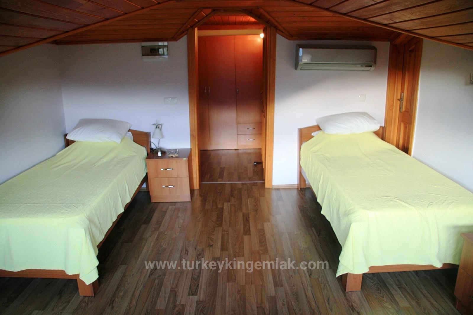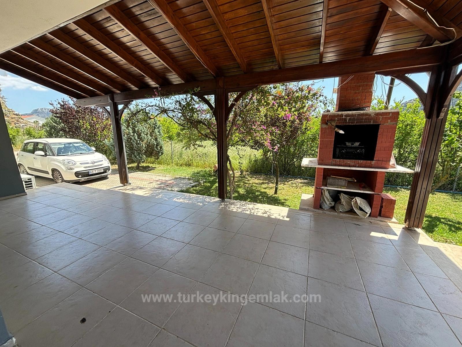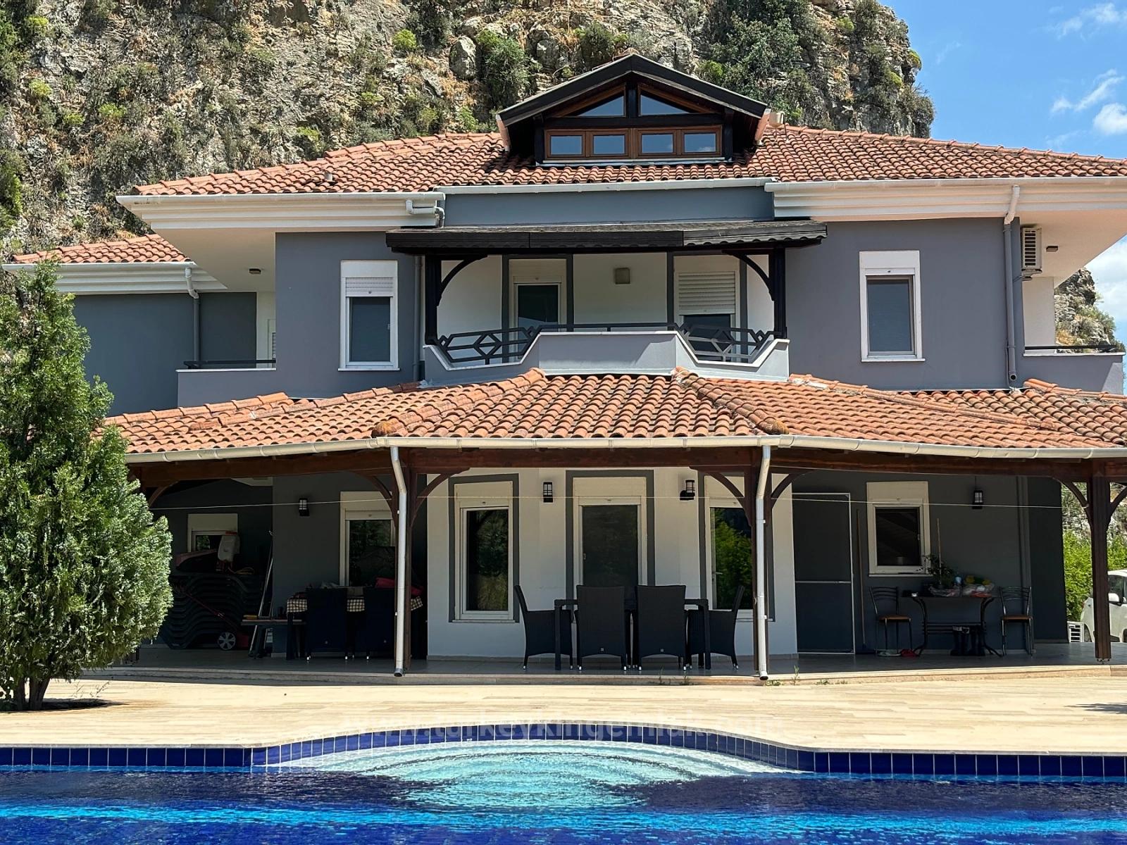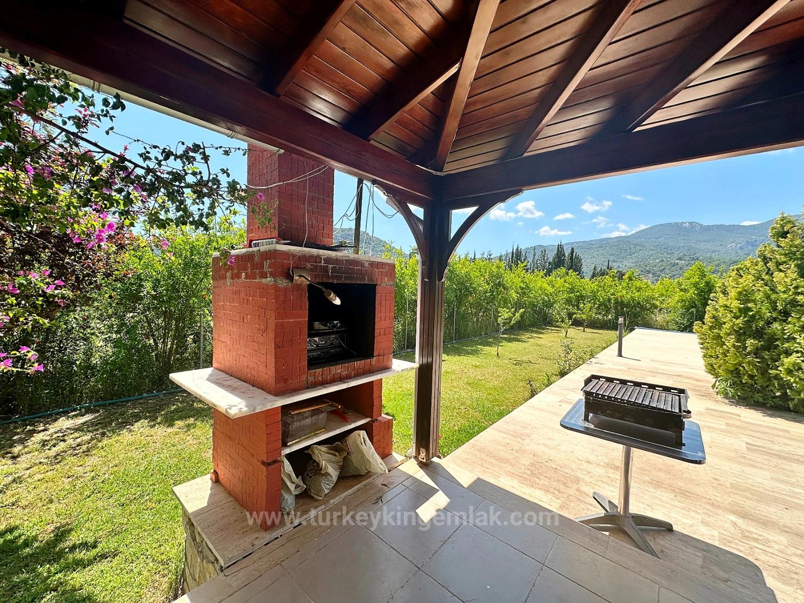 Расположенная у подножия гор Карадаг, в окружении щедрости природы, эта исключительная отдельно стоящая вилла предлагает абсолютную приватность на собственной обширной территории, находясь при этом всего в 15 минутах приятной прогулки от оживленного центра Дальяна. В этом доме в идеальной гармонии сочетаются покой, простор и элегантный загородный образ жизни. Расположенная на плодородной и пышной земле площадью около 6000 м², эта впечатляющая вилла с четырьмя спальнями окружена гранатовыми, апельсиновыми, сливовыми, грушевыми, яблоневыми, оливковыми и лимонными деревьями, создавая настоящий частный фруктовый сад. Здесь бесчисленные уголки для отдыха среди ухоженных газонов, ярких цветов и звуков природы. Огромный бассейн площадью 77 м² выделяется своим глубоким синим цветом, неглубокими ступенями и идеальными размерами для плавания. Огромная терраса, простирающаяся вдоль бассейна, с полностью крытой конструкцией и встроенным барбекю, готова принимать долгие обеды и приятные встречи в течение всего года. При въезде на виллу через двустворчатые главные ворота с частной парковки вас встречает просторный вестибюль с теплой и уютной атмосферой загородного дома. Двери, открывающиеся во всех направлениях, сразу же подчеркивают просторность дома. На первом этаже гостиная с большой зоной отдыха и открытым камином приглашает вас остановиться и насладиться моментом; а игровая комната, оборудованная полноразмерным бильярдным столом, дополняет развлечения. Гостевая ванная комната и вместительные встроенные шкафы делают повседневную жизнь чрезвычайно удобной. На первом этаже выделяется очень большой бассейн площадью 77 м², отличающийся глубоким синим цветом, неглубокими ступенями и чрезвычайно подходящими размерами для плавания. Кухня, сердце дома, сама по себе является жилым пространством. Ее просторная U-образная планировка, отдельно стоящий кухонный остров, большой обеденный стол на восемь человек и удобная зона отдыха для просмотра телевизора объединяют семью и гостей. Большая подсобная комната, доступная из кухни, выходит на боковую сторону дома, предлагая идеальный проход, особенно при входе из сада или с домашними животными. Все эти зоны плавно переходят в заднюю террасу и сад, окружающий бассейн. На верхнем этаже вас встречает впечатляющая главная спальня с гардеробной и ванной комнатой с душем и полноразмерной ванной. Просыпаться в этой комнате – одно из самых прекрасных удовольствий, ведь с просторного балкона, тянущегося вдоль заднего фасада, открывается вид на озеро Кёйчегиз, окружающие горы и поля. Вторая спальня также очень просторная, предлагая высочайший уровень комфорта со своей собственной ванной комнатой с душем, зоной отдыха и отдельным балконом. Третья спальня, благодаря своим размерам, может использоваться как двухместная или с двумя односпальными кроватями; с балконом с видом на озеро и ванной комнатой она предлагает практически полный комфорт. В коридоре также есть отдельный балкон и зона отдыха с видом на горы в переднем саду. На верхнем этаже, под скатами крыши, расположена четвертая спальня; она предлагает очаровательное и очень функциональное пространство с большим количеством места для хранения вещей. Все комнаты очень просторные и оборудованы кондиционерами и центральным отопление