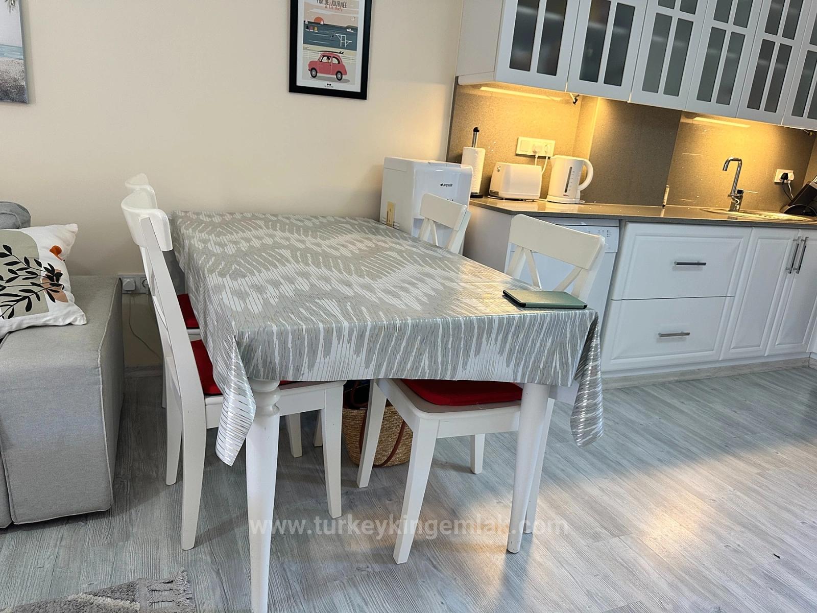 Расположенный на тихой и элегантной улочке Османагалара, этот очаровательный комплекс предлагает редкое жилое пространство, состоящее всего из 8 частных вилл. Этот уникальный комплекс, расположенный в пышных, естественно сохранившихся садах площадью 1500 м², включает в себя просторные мелководные зоны площадью 350 м², олимпийский бассейн, стильный пруд, украшенный водяными лилиями, и просторные зоны для принятия солнечных ванн, где можно в полной мере насладиться солнцем – все это воплощает в жизнь средиземноморскую мечту. Одна из этих эксклюзивных вилл, Sunstone A1, расположена на углу и примыкает только к одному соседу. Она имеет большой задний двор и дополнительный боковой сад. Собственная зона барбекю и обеденная зона на открытом воздухе создают идеальные условия для приятных летних вечеров. Недавно установленный современный навес на передней террасе обеспечивает прохладную тень в самые жаркие часы дня, а также создает идеальное место для отдыха у бассейна и наслаждения видом.