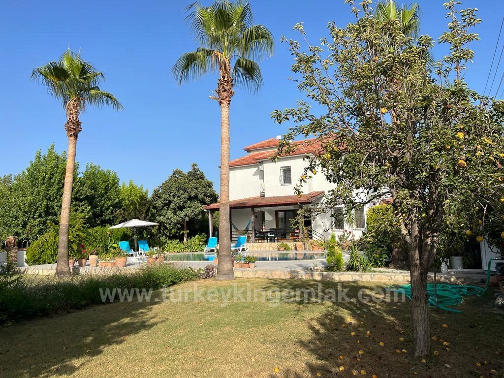 Limon bahçeleri, açık araziler ve dağ manzaralarıyla çevrili olan villanın bahçesi, tek tapu altında birleştirilmiş iki parselden oluşmaktadır. Yemyeşil ve bakımlı bahçede meyve ağaçları, çim alanlar, sebze bahçesi ve altı kişilik geleneksel bir köşk bulunmaktadır. Açık havada keyifli vakit geçirmek için ideal bir ortam sunar.